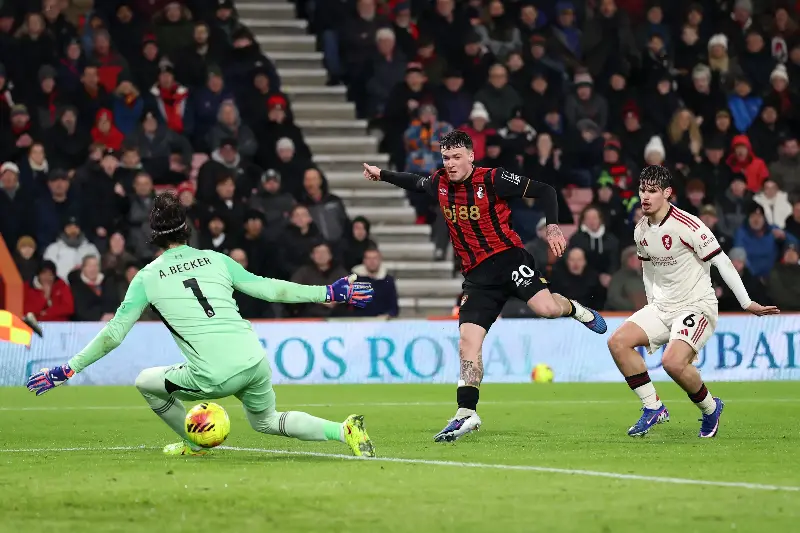 The stadium was jolted into a frenzy in the 26th minute when the home side drew first blood. Exploiting a rare and uncharacteristic lapse in concentration from Virgil van Dijk, Bournemouth’s Alex Scott intercepted a loose ball and played a surgical pass into the path of Evanilson. The striker remained remarkably composed, slotting the ball past Alisson Becker from close range to give the hosts a shock lead.