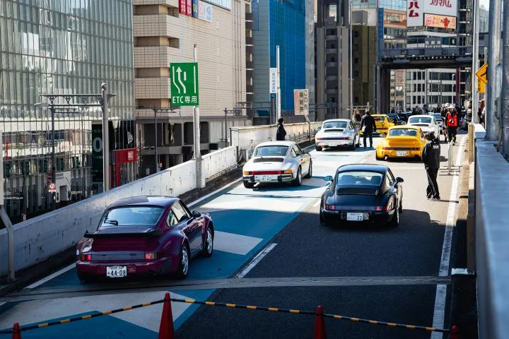 At the curved section of the expressway was a group of Porsche race cars, from the 962 to the 993 cup cars. It gave the perfect look of race cars taking over the streets of Japan.