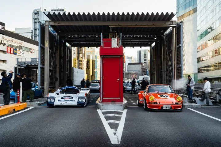 Porsches that frequently ran the Japanese expressways were positioned along the toll booth entrance. The cars were all spaced out to make it look like they were ready to hit the C1 loop or even run the Wangan or the Yokohane line.